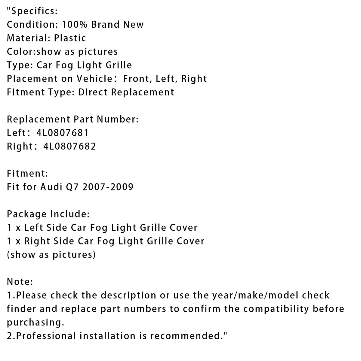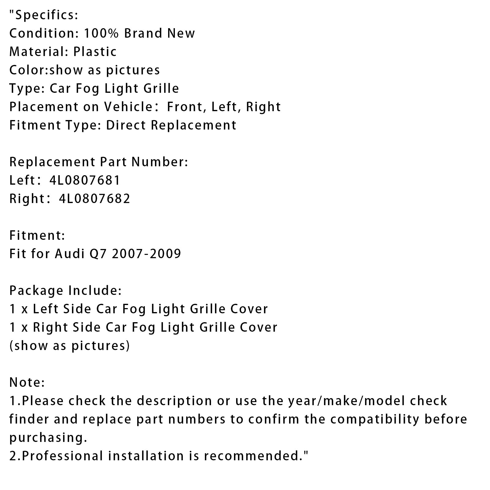 2007–2009 Audi Q7 1 Paar Frontstoßstange Nebelscheinwerfer Grill Abdeckung Blende 4L0807681