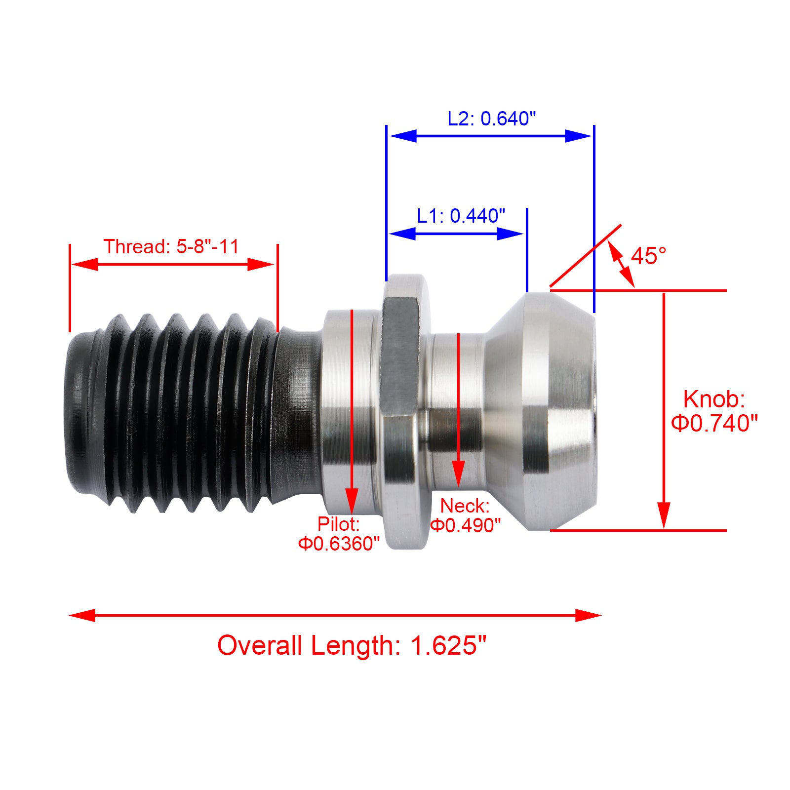 10 Stück CAT40 45° 0,740 Zoll Zugbolzen-Halteknopf passend für Mazak Fadal CNC, Silber