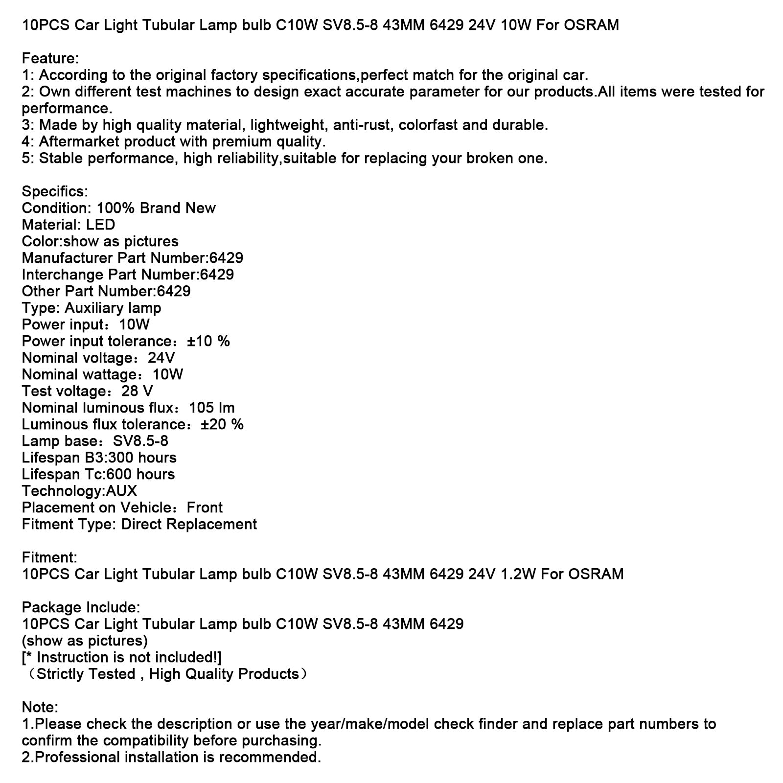 10 STÜCKE Auto Licht Rohrlampe birne C10W SV8.5-8 43 MM 6429 24 V 1,2 Watt Für OSRAM