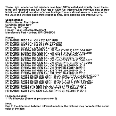1 STüCKE Kraftstoffinjektor 15710M83P00 Fit MARUTI CIAZ 1.4L ERTIGA SWIFT DZIRE