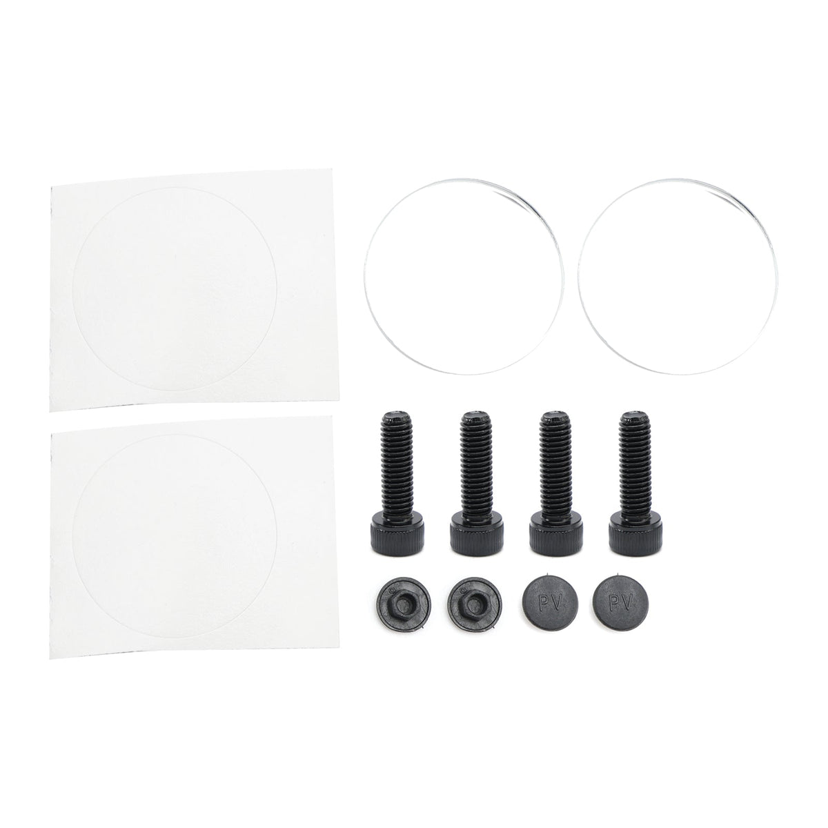 Im Lieferumfang sind 4 Schrauben M6 x 20 mm und Spiegellochkappen enthalten.