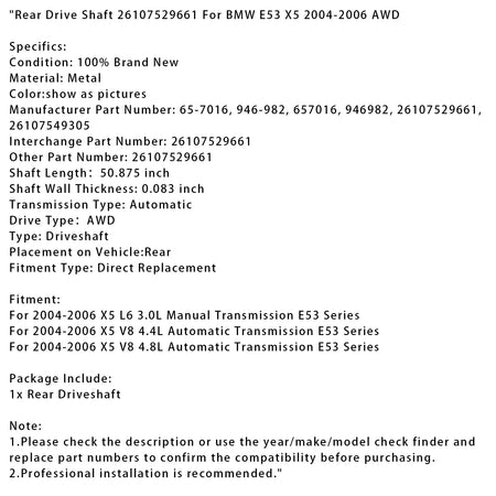 Hintere Antriebswelle 26107529661 Für BMW E53 X5 2004-2006 AWD