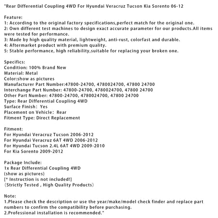 Hintere Differentialkupplung 4WD Für Hyundai Veracruz Tucson Kia Sorento 2006-2012
