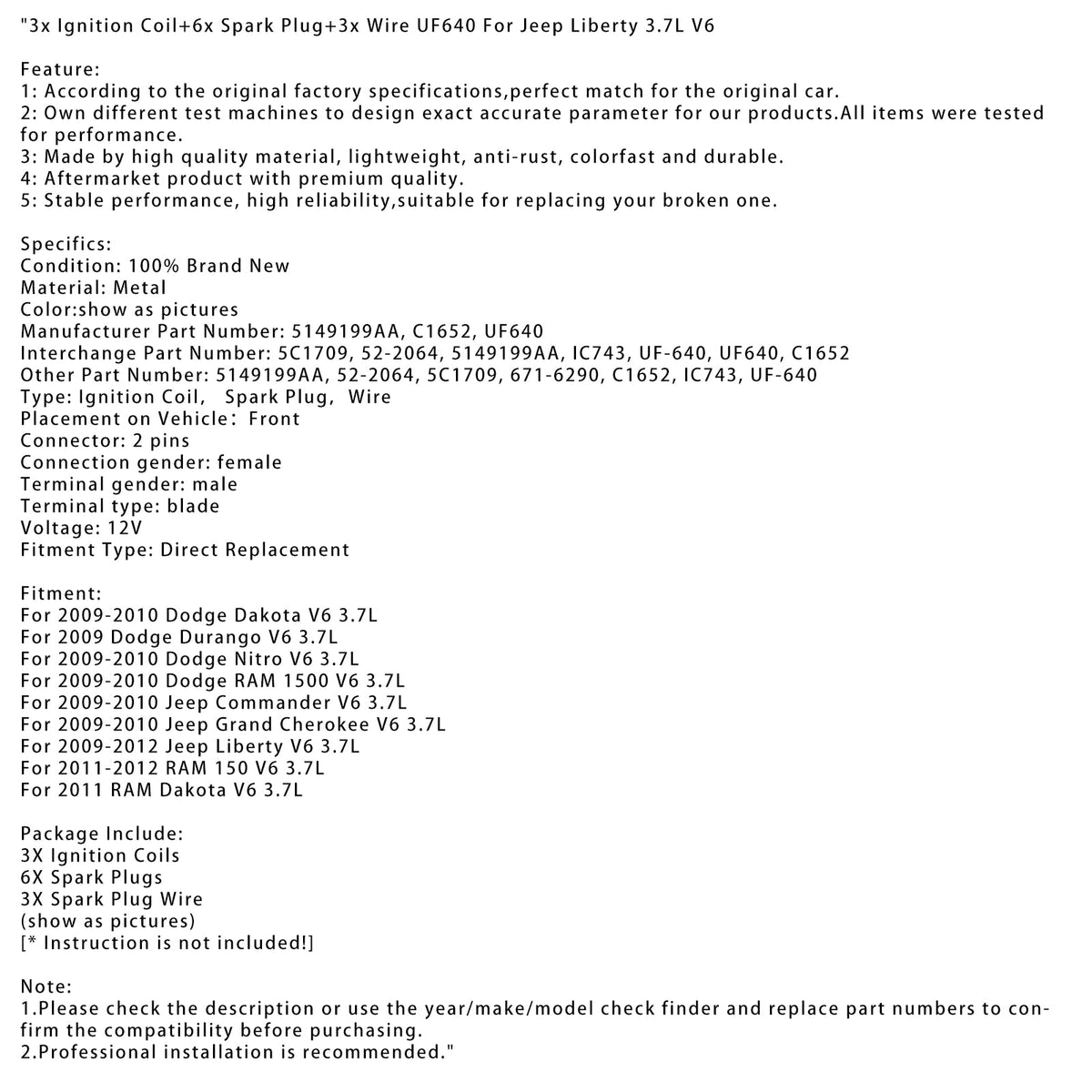 1. Bitte überprüfen Sie vor dem Kauf die Beschreibung oder verwenden Sie die Baujahr-/Marken-/Modellsuchfunktion und ersetzen Sie die Teilenummern, um die Kompatibilit?t zu best?tigen.