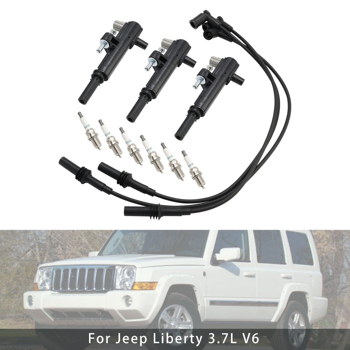 3x Zündspule + 6x Zündkerze + 3x Kabel UF640 Passend für Jeep Liberty 3.7L V6
