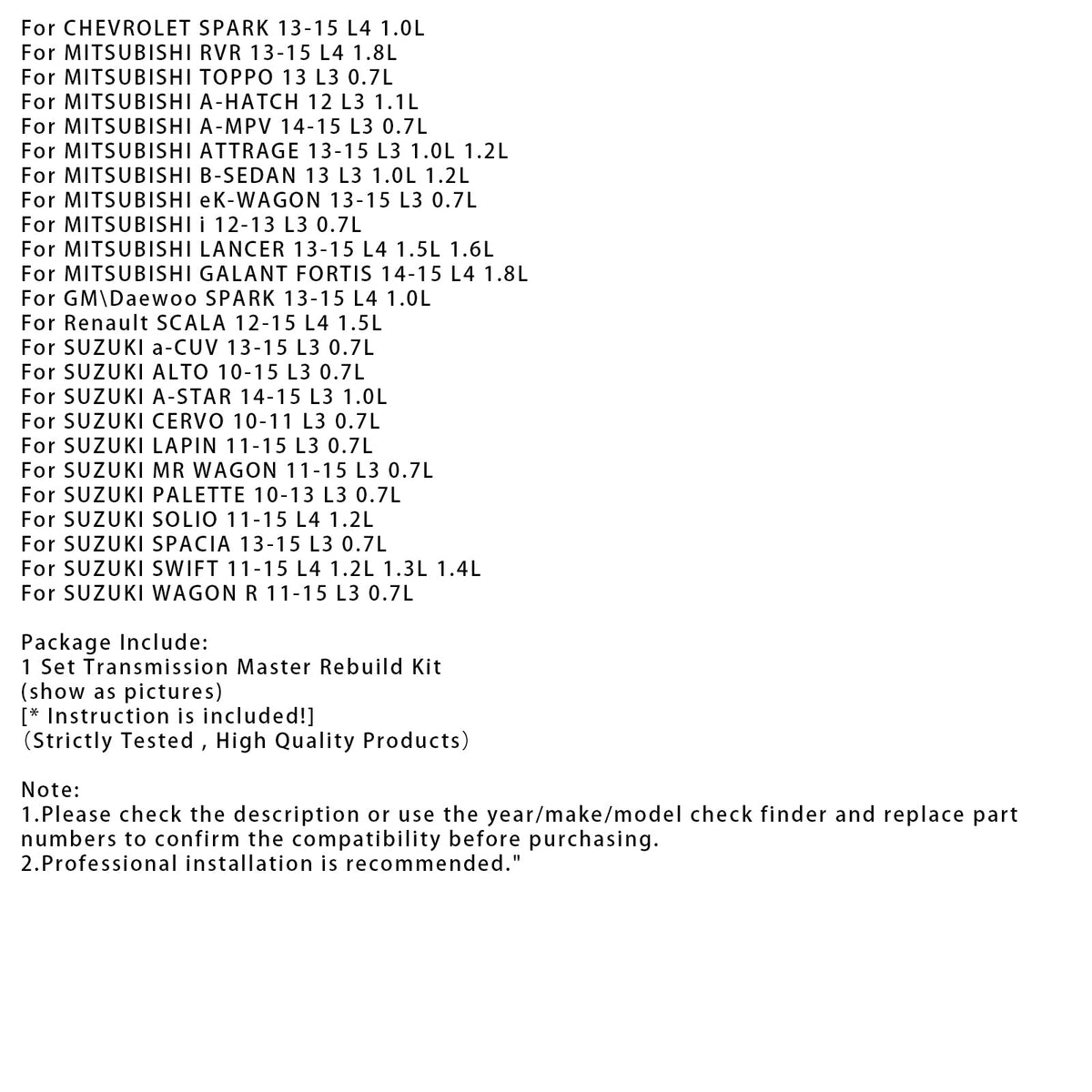 1. Bitte überprüfen Sie vor dem Kauf die Beschreibung oder verwenden Sie den Prüffinder für Jahr/Marke/Modell und ersetzen Sie die Teilenummern, um die Kompatibilität zu bestätigen.