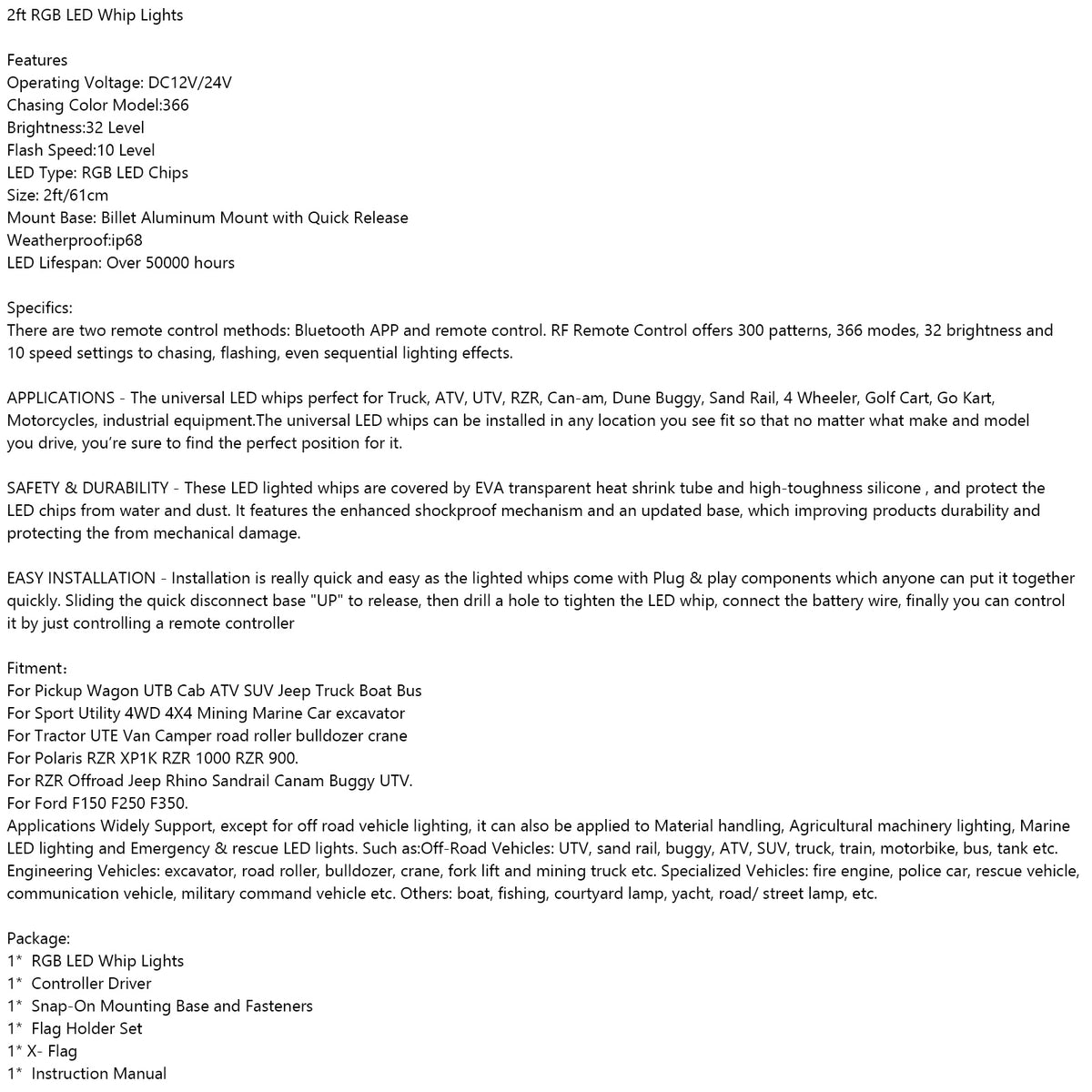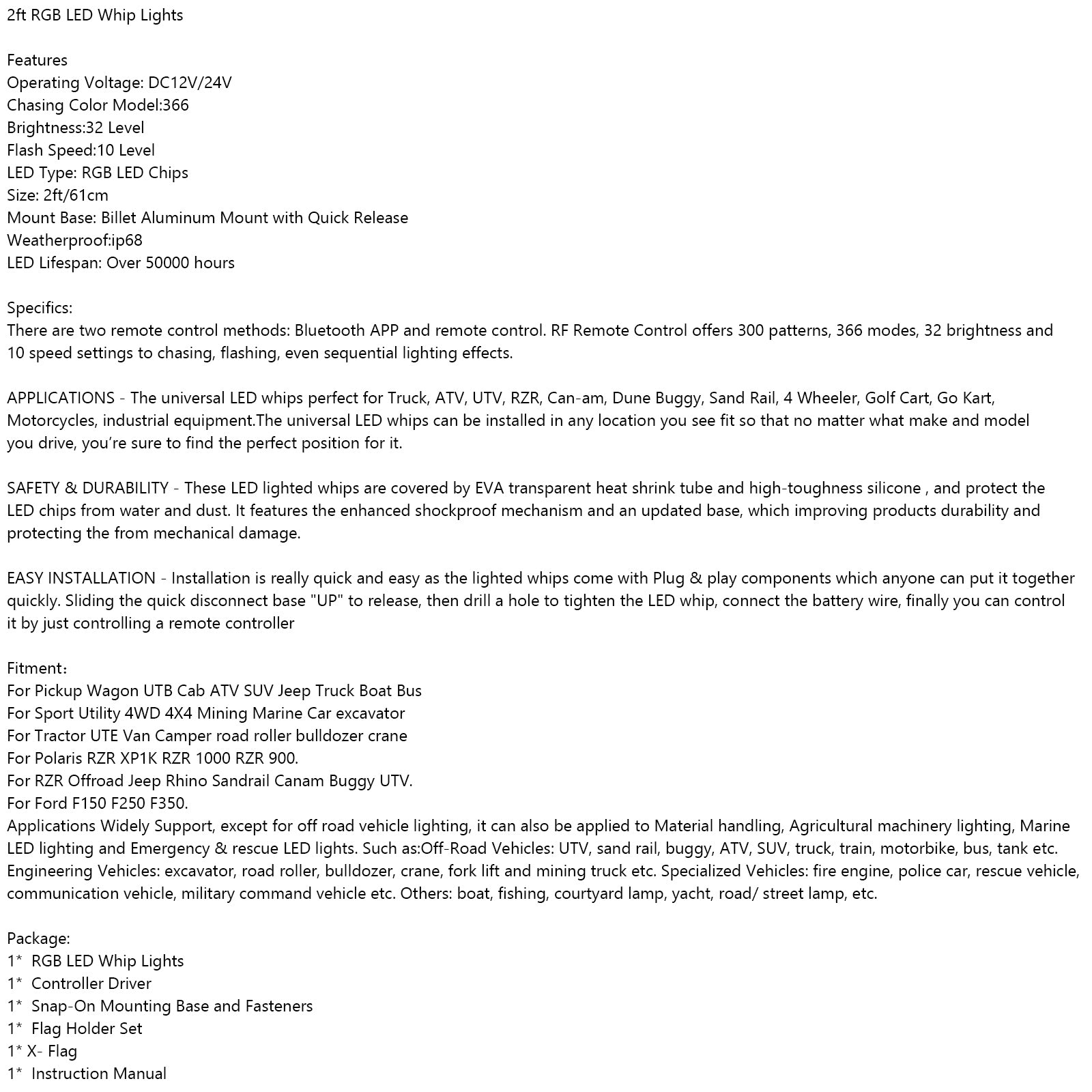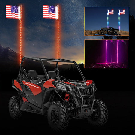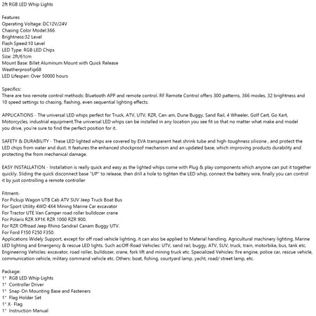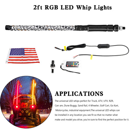 2ft RGB LED APP Whip Lights Antenne mit Flaggenfernbedienung für Polaris UTV ATV