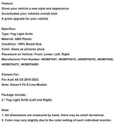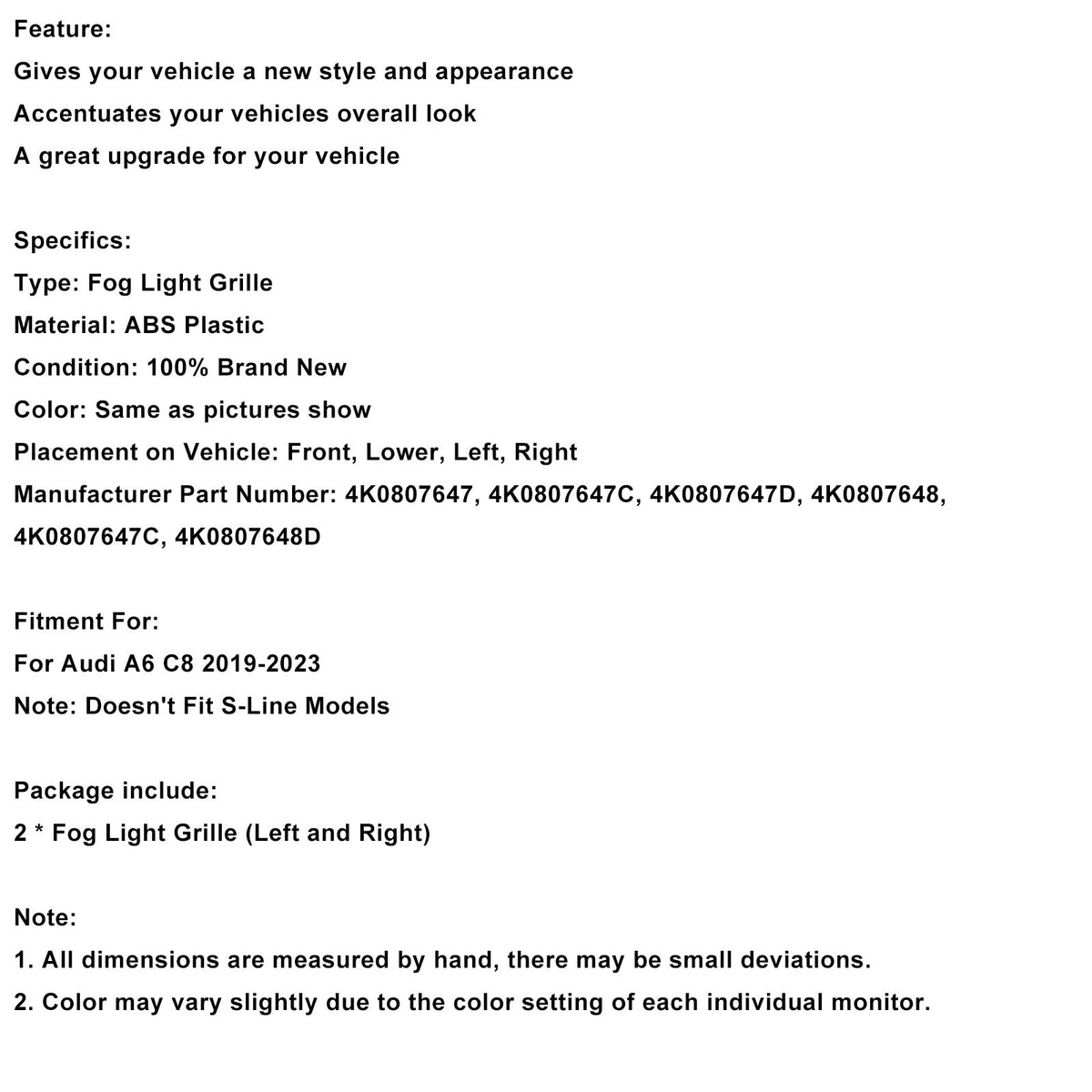2PCS Frontstoßstange Grille Grill Nebelscheinwerfer Abdeckung Fit Audi A6 C8 2019-2023