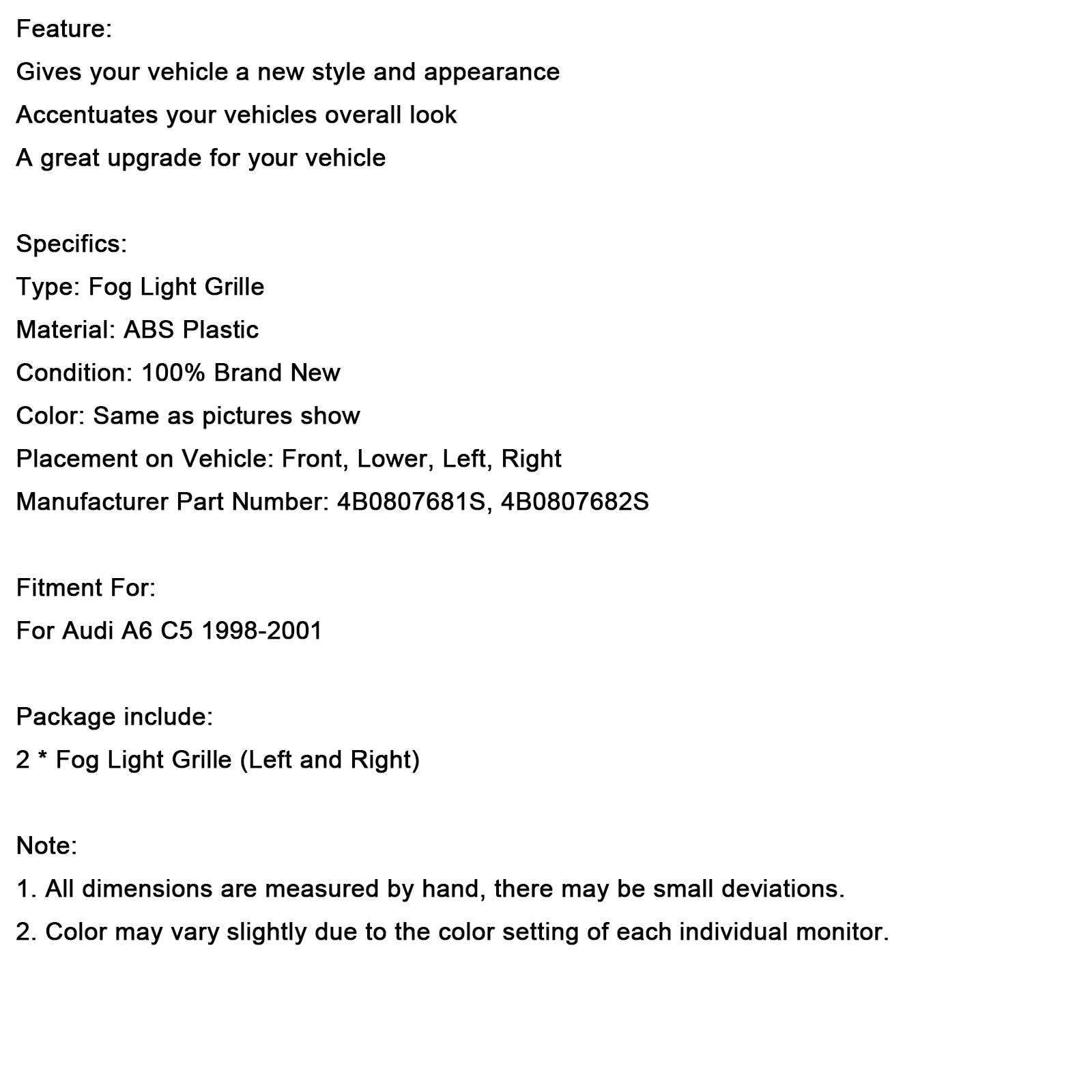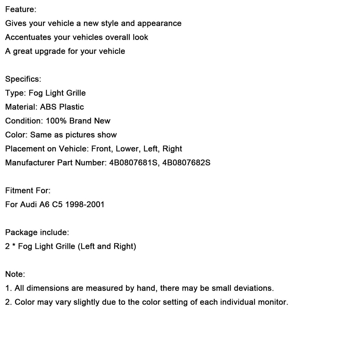 2 STÜCKE Front Lower Bumper Nebelscheinwerfer Abdeckung Grille Fit Audi A6 C5 1998-2001
