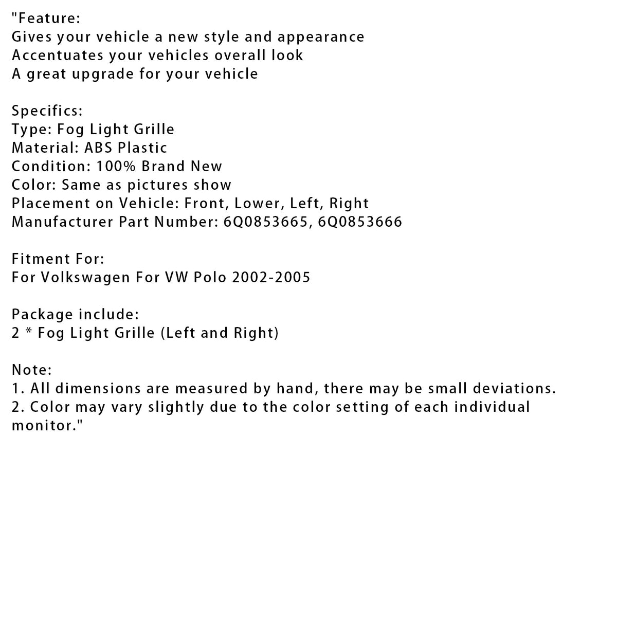 2 STÜCKE Front Lower Nebelscheinwerfer Abdeckung Kühlergrill Grill Fit VW Polo 2002-2005