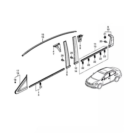2012–2015 Honda Civic 4 Türen 2 Stück Dachrinne Formteil links und rechts Seite Gummi