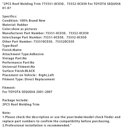 2 STÜCKE Dachleisten 775551-0C030,75552-0C030 Für TOYOTA SEQUOIA 2001-2007