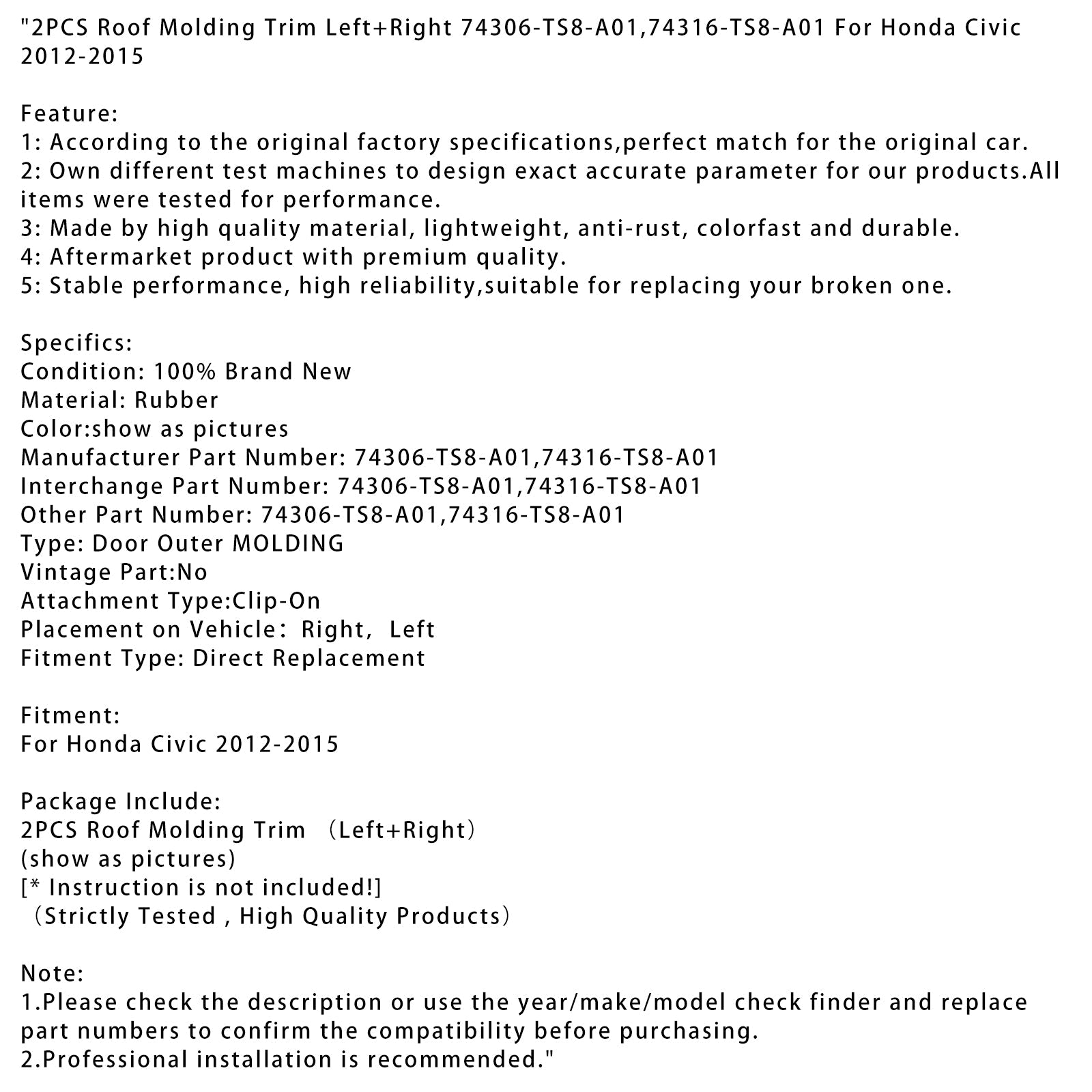 2PCS Dach Molding Trim Links + Rechts 74306-TS8-A01,74316-TS8-A01 Für Honda Civic 2012-2015