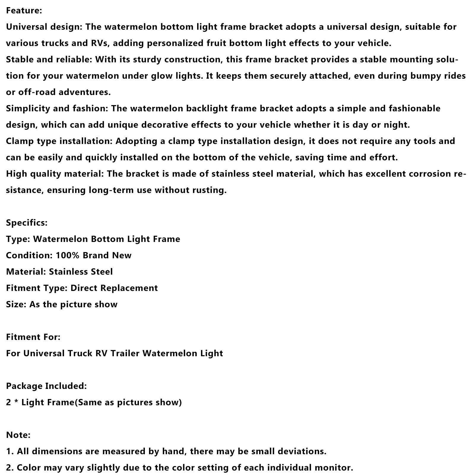 Universal Truck RV Trailer Wassermelone Licht 2PCS Wassermelone Unter Glow Rahmen Halterung Universal Clamp Stil Halterung