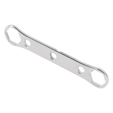Der Schlüssel hat eine gebürstete Oberfl?che und eine abgeschr?gte Au?enkante am Griff. Ein Ende des Schlüssels ist 26 mm, das andere 32 mm lang. Er hat keine Fase an den sechseckigen Sechskantenden und ist daher ideal für die sehr kurzen Luftkappen und Top-Caps von Gabeln. Er hat au?erdem einen geringeren Abstand als ein Steckschlüssel gleicher Gr??e, was für eine bessere Haltekraft sorgt.