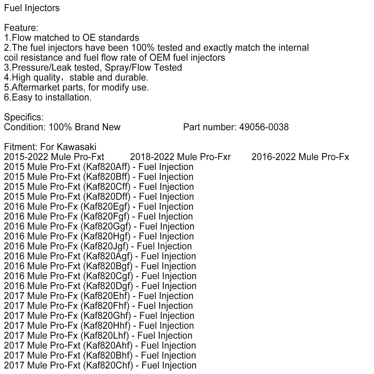3PCS 49056-0038 Kraftstoff Injektor Für Kawasaki Mule PRO FX FXR FXT KAF820 KAF820 EPS