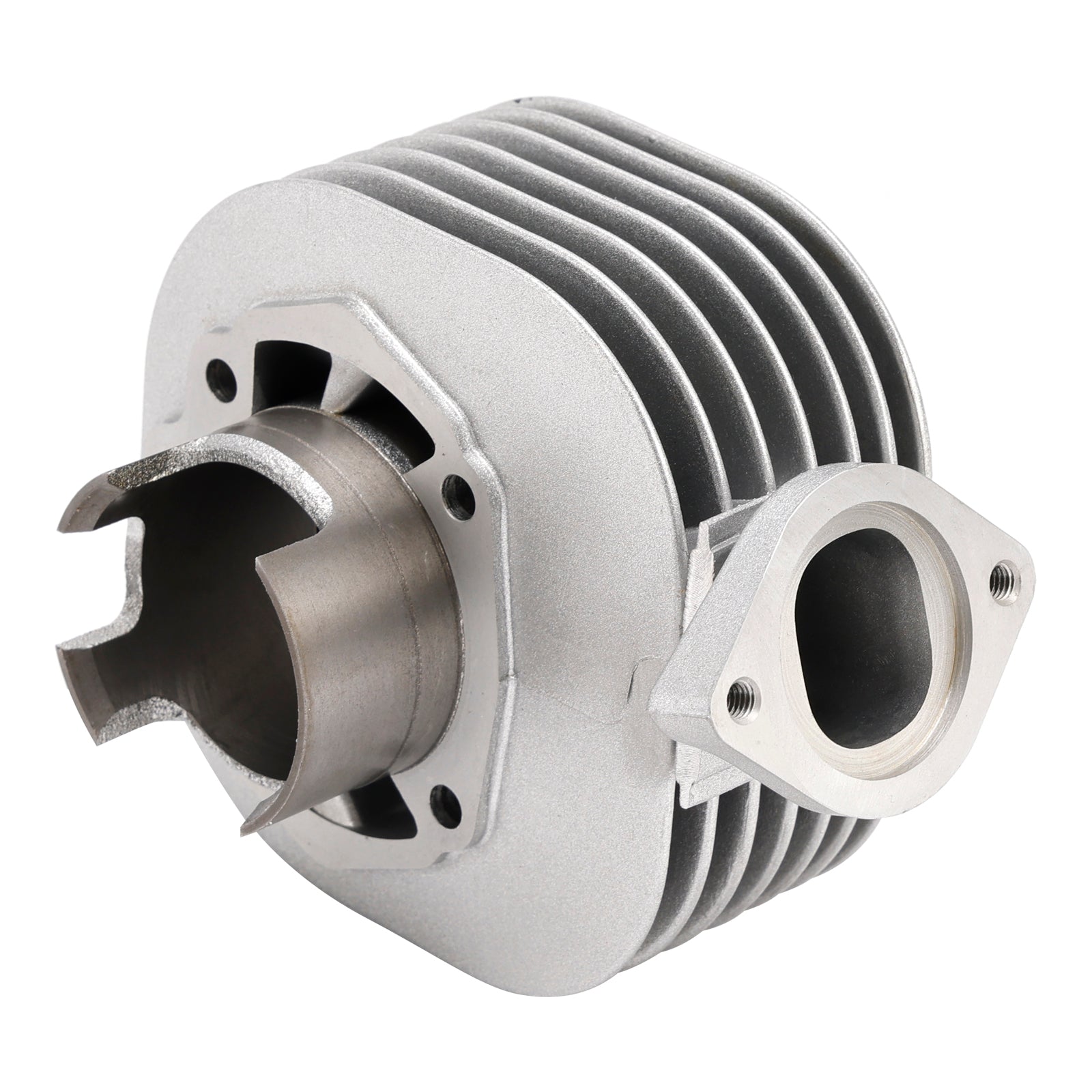 Der Zylinder besteht aus Aluminium für eine gute Kühlung mit einer inneren Ummantelung aus Gusseisen (im Gegensatz zu denen mit Nikasil-Beschichtung).