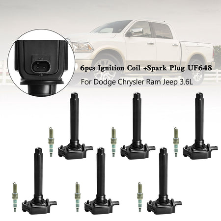5149168AH 6 Stück Zündspule + Zündkerze UF648 für Dodge Chrysler Ram Jeep 3.6L