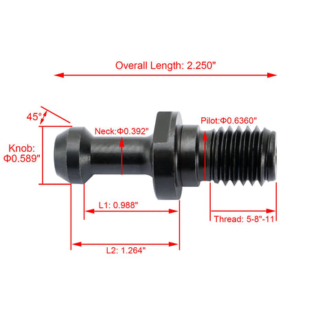 5 Stücke CAT40 45 ° 0,589 "Grad Anzugsbolzen Halteknopf Passt HAAS CAT CNC Schwarz
