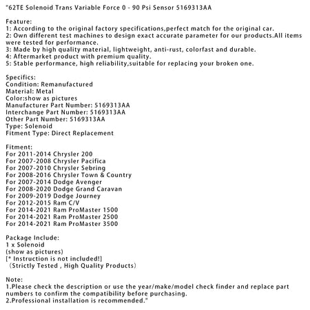 62TE Magnetspule, variable Kraft, 0 - 90 Psi Sensor 5169313AA
