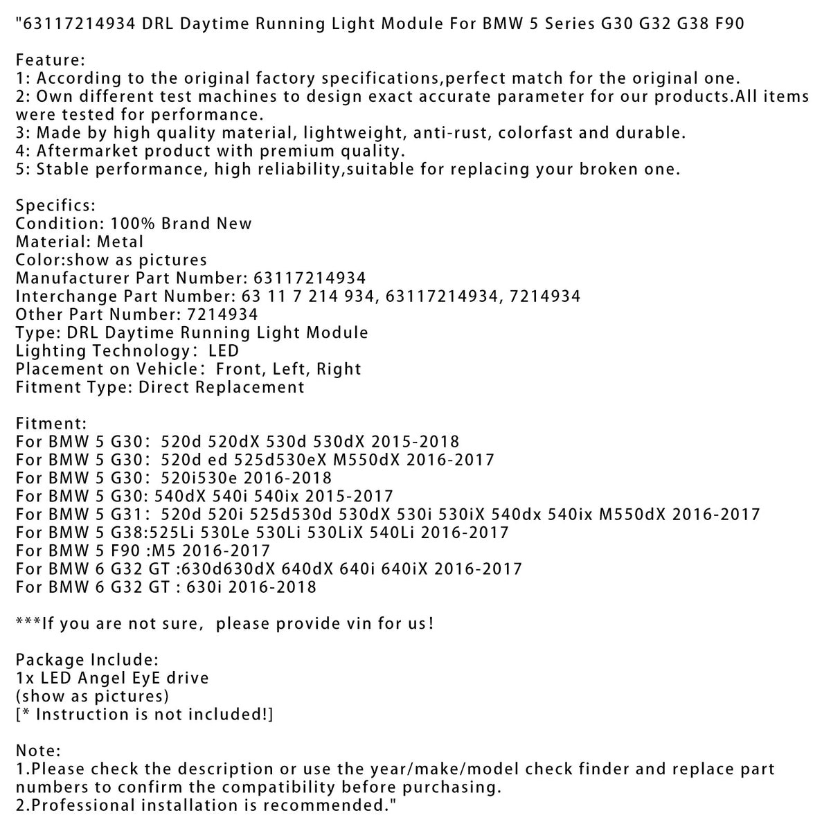 63117214934 DRL Tagfahrlicht Modul Für BMW 5 Serie G30 G32 G38 F90