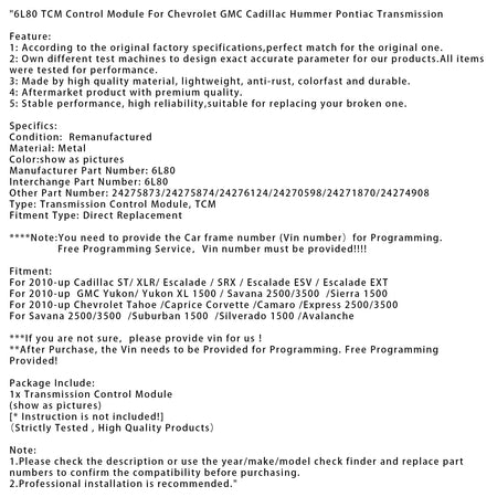 6L80 TCM-Steuermodul für Chevrolet GMC Cadillac Hummer Pontiac-Übertragung