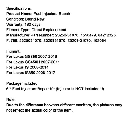 6PCS Kraftstoff Injektor Reparatur Dichtung Kit FJ786 Fit Lexus IS350 GS350 GS450h IST