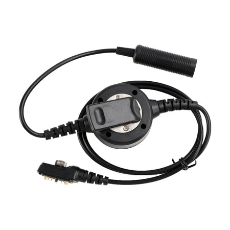 Es kann mit einem PTT-Kabel (Push-to-Talk) mit 7,1-mm-Buchse verwendet werden. Ein Ende des PTT-Kabels ist ein 7,1-Buchsenstecker und das andere Ende ist ein Steckertyp, der verschiedene Intercom-Stecker haben kann.