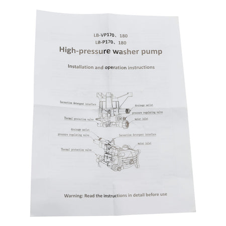 5.Bitte beachten Sie, dass es nicht empfohlen wird, eine Hochdruckreinigerpumpe über ihren maximalen PSI-Wert hinaus zu betreiben. Dies kann zu Sch?den an der Pumpe (nicht durch die Garantie abgedeckt) und/oder schweren K?rperverletzungen führen.