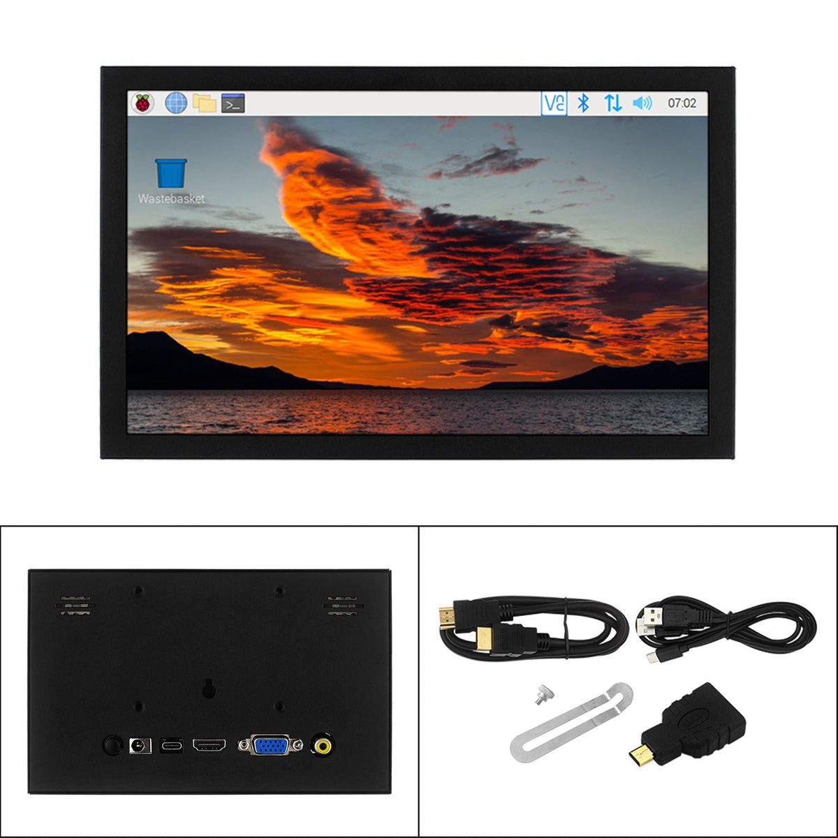 7-Zoll-HD-IPS-Display, VGA/AV/HDMI-Schnittstelle, Raspberry Pi PC-überwachungsbildschirm
