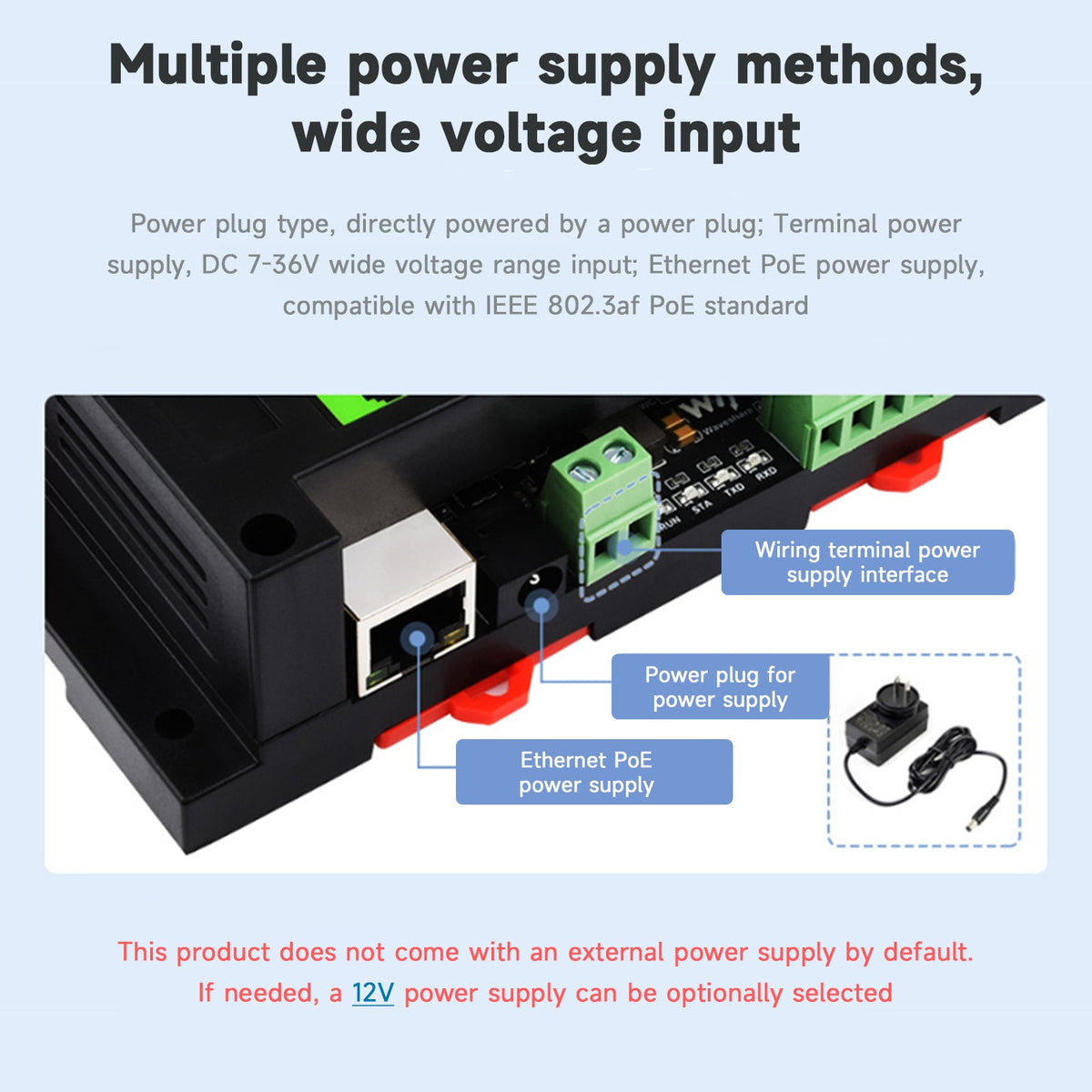 Unterstützt DC 7 ~ 36 V Weitspannungsnetzteil, unterstützt PoE-Ethernet-Stromversorgung