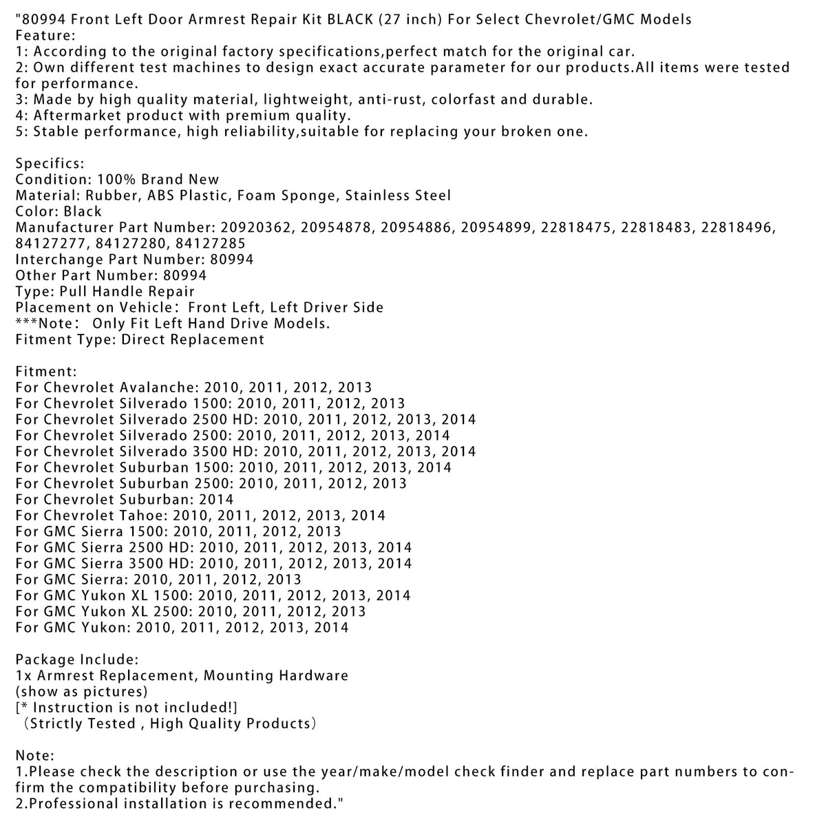 80994 Reparatursatz für Armlehne vorne links, SCHWARZ (27 Zoll) Für ausgew?hlte Chevrolet/GMC-Modelle