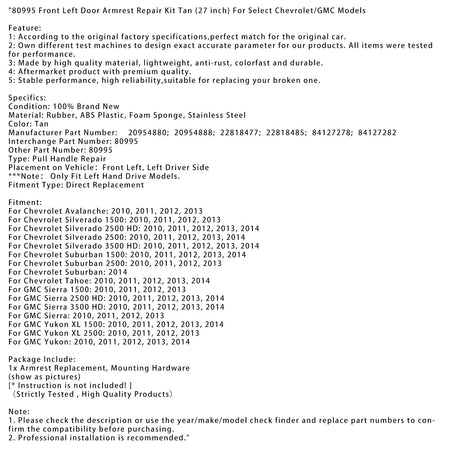 80995 Reparatursatz für Armlehne vorne links, hellbraun (27 Zoll), für ausgew?hlte Chevrolet/GMC-Modelle