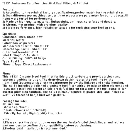 8131 Performer Carb Kraftstoffleitungssatz Kraftstofffilter -6 AN Einlass