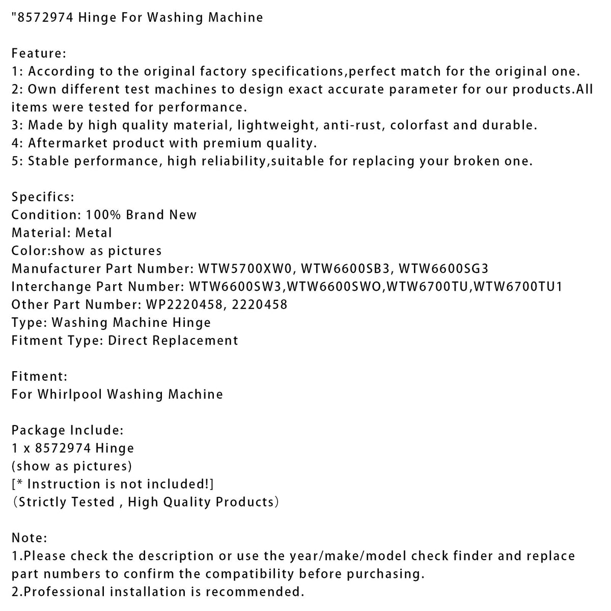 8572974 Scharnier für Waschmaschine