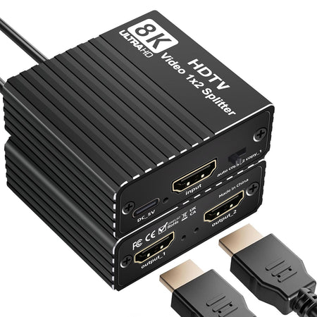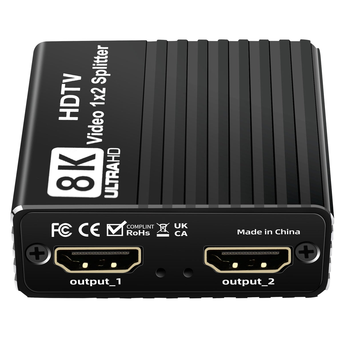 8K HDMI 1 zu 2 Splitter HD2.1 8K60hz/4K120hz/1080P240hz mit EDID Splitter 1x2