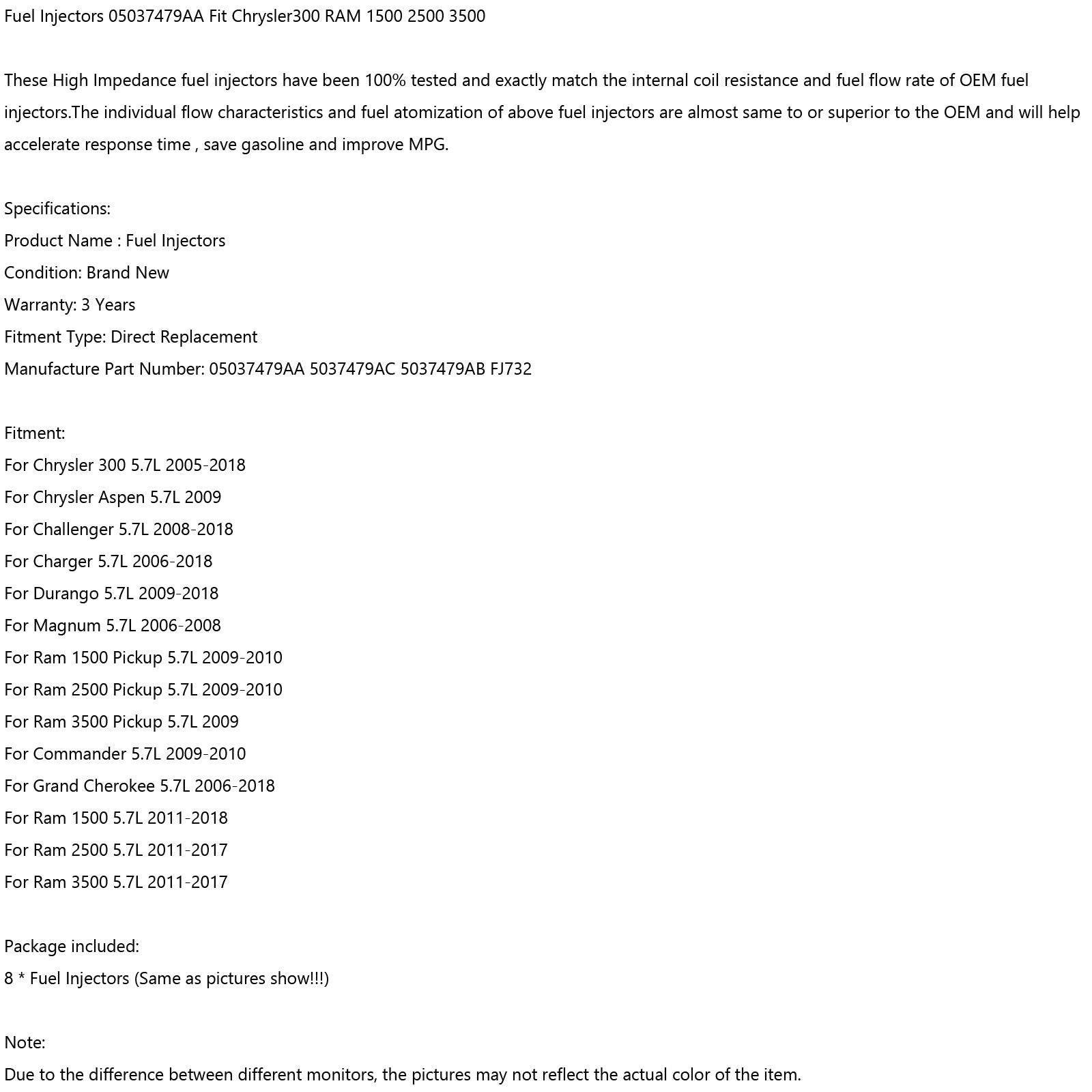 Fuel Injectors 05037479AA Fit Chrysler300 RAM 1500 2500 3500