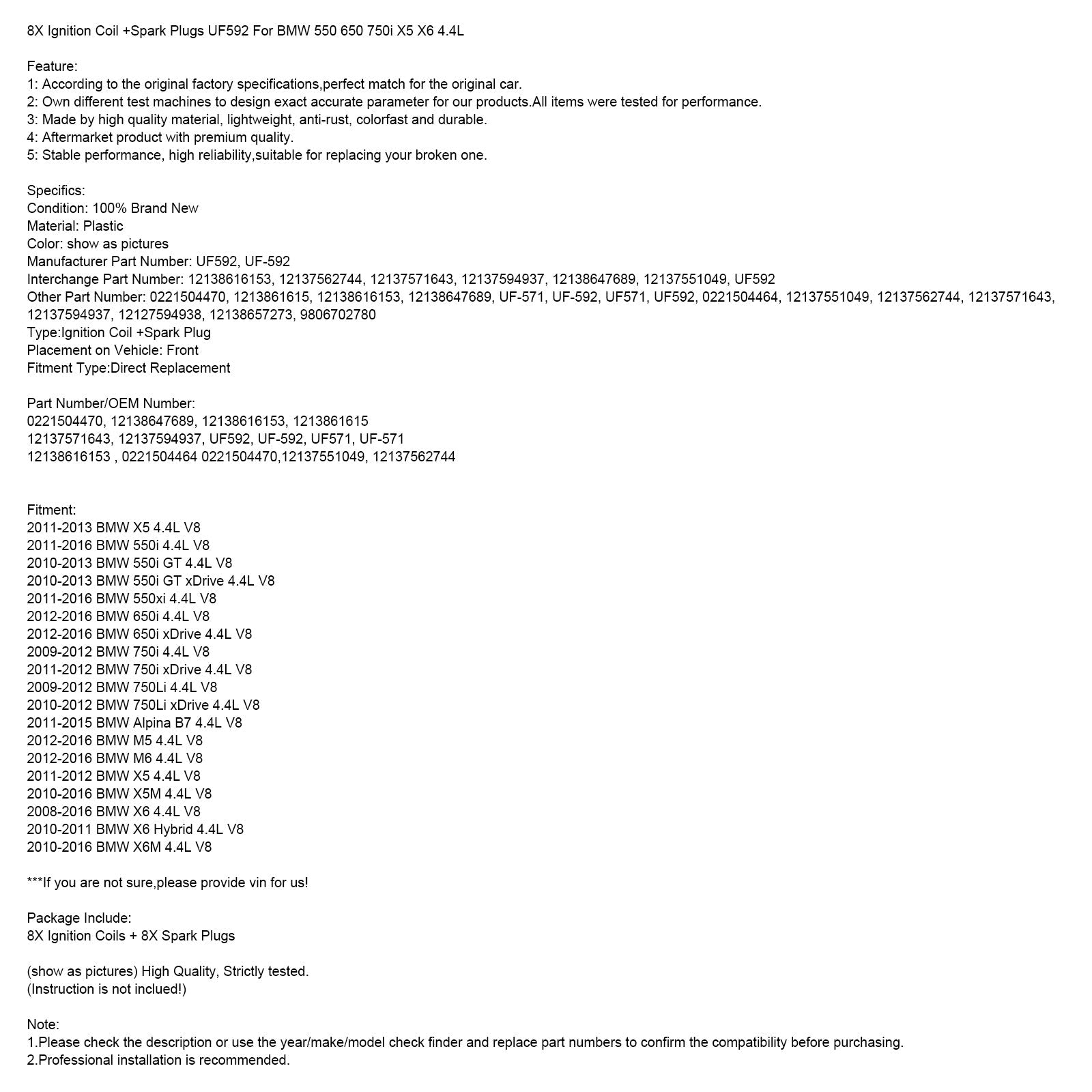 8X Zündspule + Zündkerzen UF592 Fit Für BMW 550 650 750i X5 X6 4,4 L