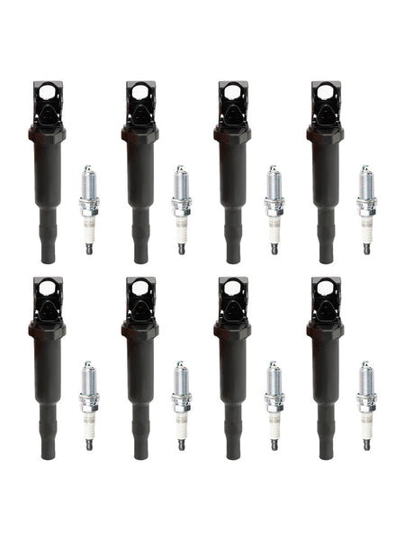 8X Zündspule + Zündkerzen UF592 Für BMW 550 650 750i X5 X6 4,4 L