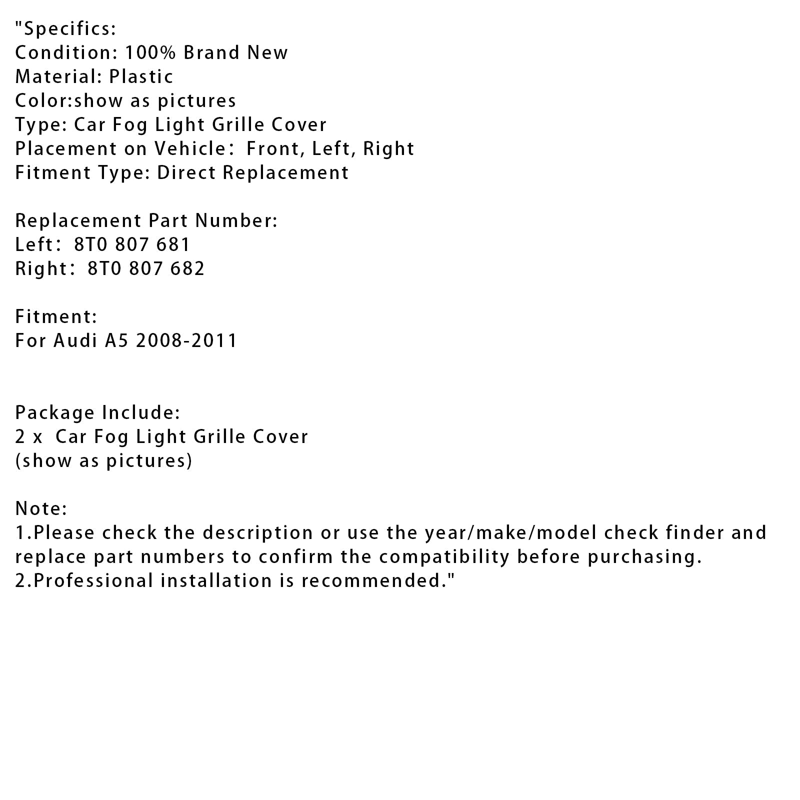 2008-2011 Audi A5 Ein Paar Auto Nebelscheinwerfer Gitter 8T0 807 682 8T0 807 681