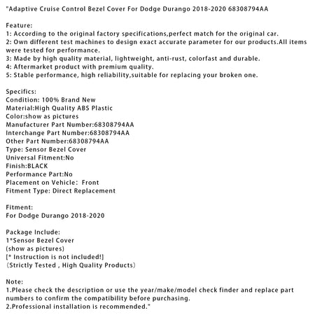 Adaptive Cruise Control Lünette Abdeckung Für Dodge Durango 2018-2020 68308794AA