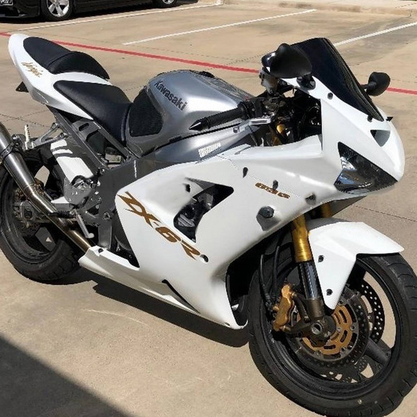 Amotopart 2003-2004 Kawasaki ZX6R 636 Wei?es Verkleidungskit mit Goldlogo