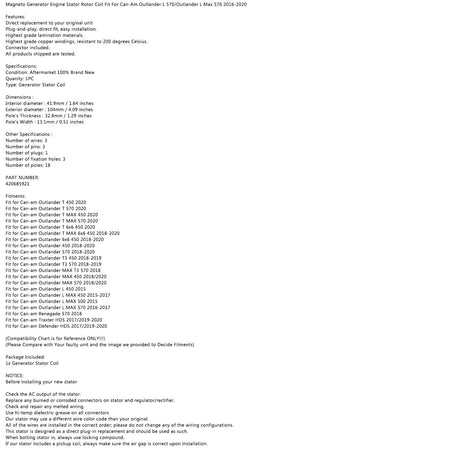 MAGNETO-Generatormotor-Stator-Rotorspule für Can-Am Outlander L 570/Outlander L Max 570 2016-2020
