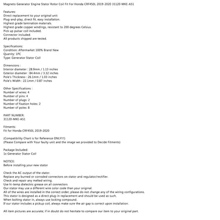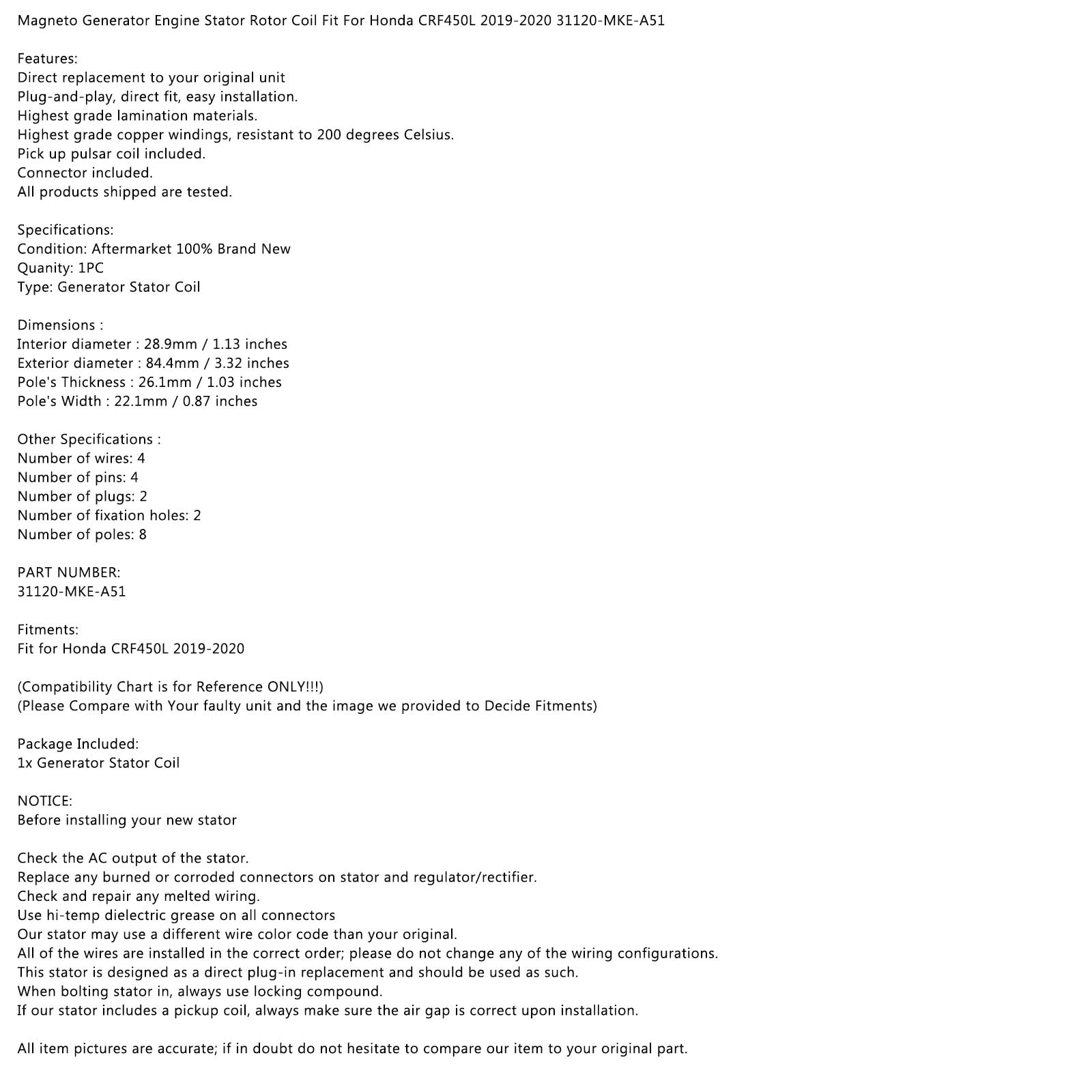 Stator generator Magneto Fit für Honda CRF 450 L CRF450L 2019 2020 31120-MKE-A51
