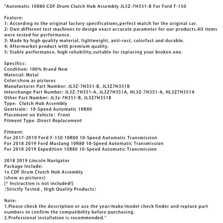 Automatische 10R80 CDF Trommel Kupplung Hub Montage JL3Z-7H351-B Für Ford F-150