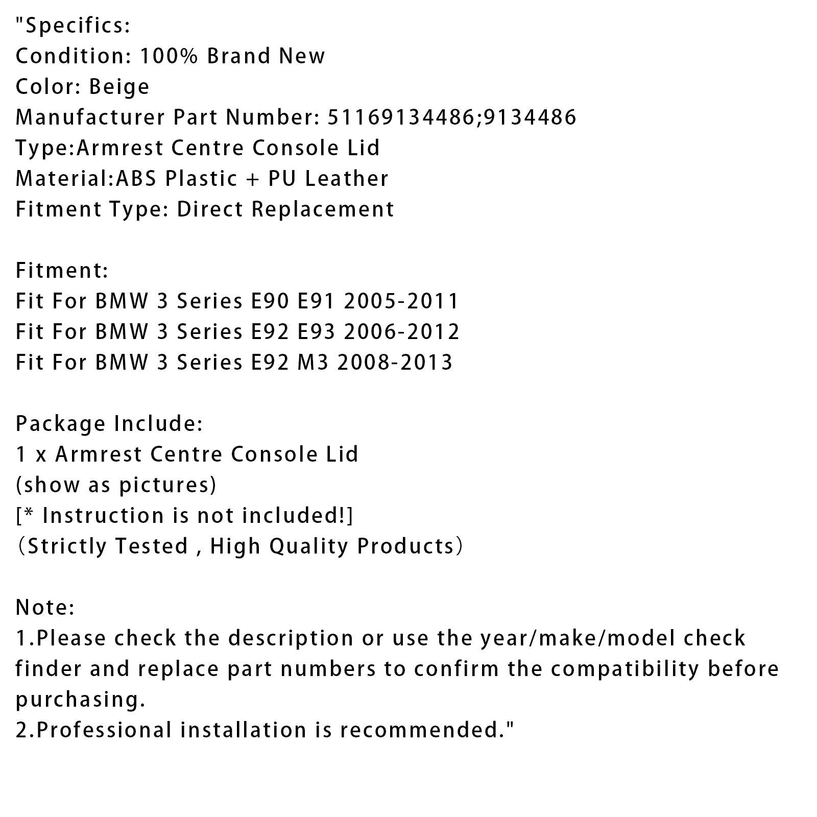 Beige Leder Armlehne Mittelkonsole Deckel Für BMW E90 E91 E92 E93 51169134486