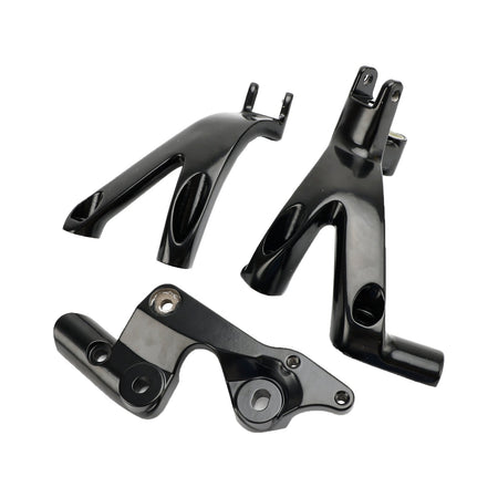 Includes left and right foot support brackets, rubber insert footpegs, shift lever, shifter linkage rod, brake lever and all necessary mounting hardware; uses stock brake master cylinder.