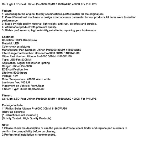Auto Licht LED-Fest Ultinon Pro6000 30MM 11860WU60 4000K Für PHILIPS