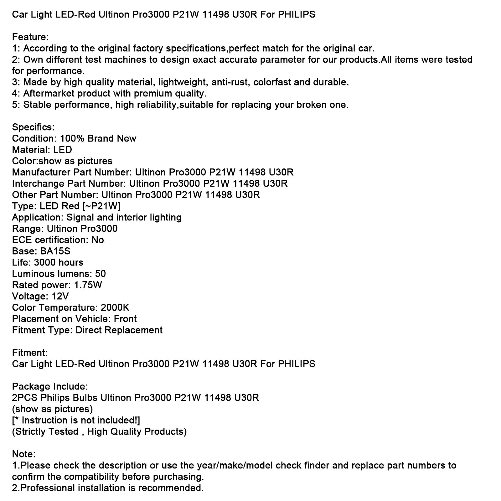 Auto Licht LED-Rot Ultinon Pro3000 P21W 11498 U30R Für PHILIPS