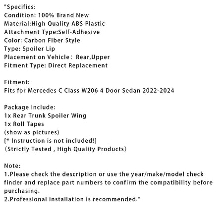 2022-2024 Benz W206 C63S Stil Carbon Fiber Look Heckspoiler Flügel